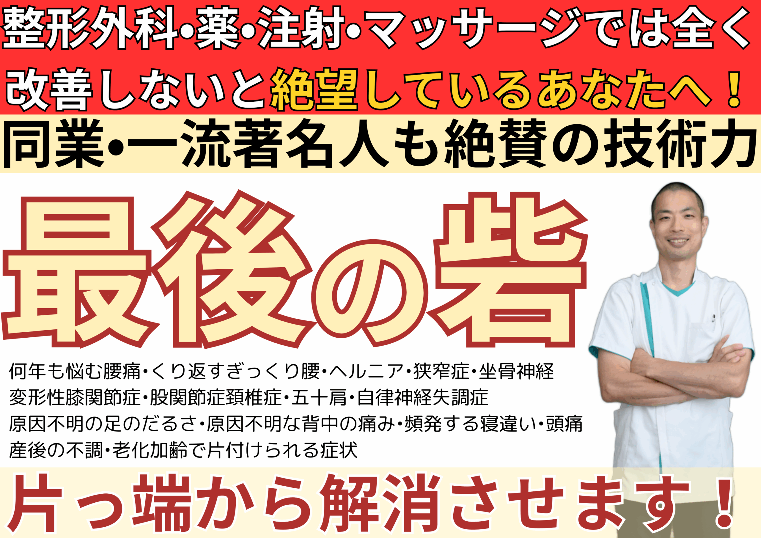 当院の現在の技術水準であれば、一般的な腰痛の改善は容易く